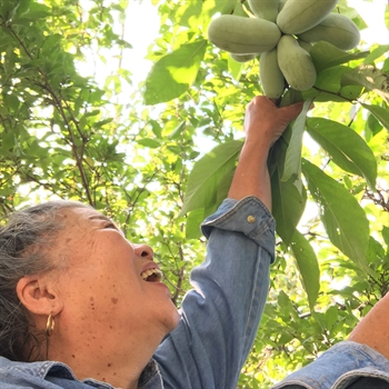 A self-taught farmer, Oriana continued her education and learned to graft, a process combining the root and the scion (a detached living portion of a tree) of two different plants to continue growing as one, and made her own Asian pear tree.
