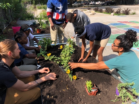 Last week, we had the pleasure of planting a garden at Manierre Elementary. Students were given a number of plant options to choose from. We then took a vote and planted the top six plants, as chosen by the 7th grade class. This exercise proved to empower our students, encouraging them to take ownership of the space before their hands even touched soil. Once we got outside, however, that ownership soared to new levels!